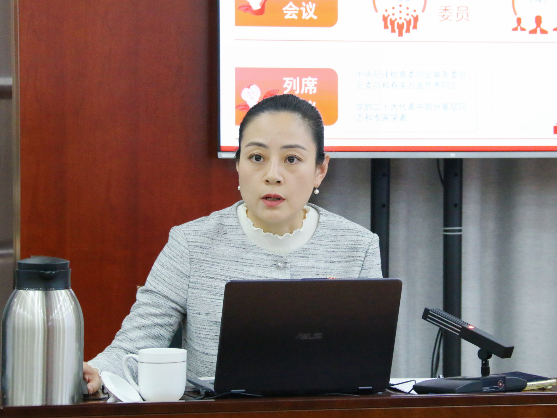 会上,梁薇领学了党的二十届四中全会精神。她指出,党的二十届四中全会是“十四五”规划收官、开启“十五五”新征程的关键会议,是在即将开启基本实现社会主义现代化夯实基础、全面发力关键时期召开的重要会议,意义重大、影响深远。全会提出了一系列新思想、新论断、新部署,为我们谋篇布局“十五五”指明了前进方向、提供了最科学的行动指南。她结合对精神的学习并结合学院实际工作,跟大家分享了学习心得并提出了具体要求。