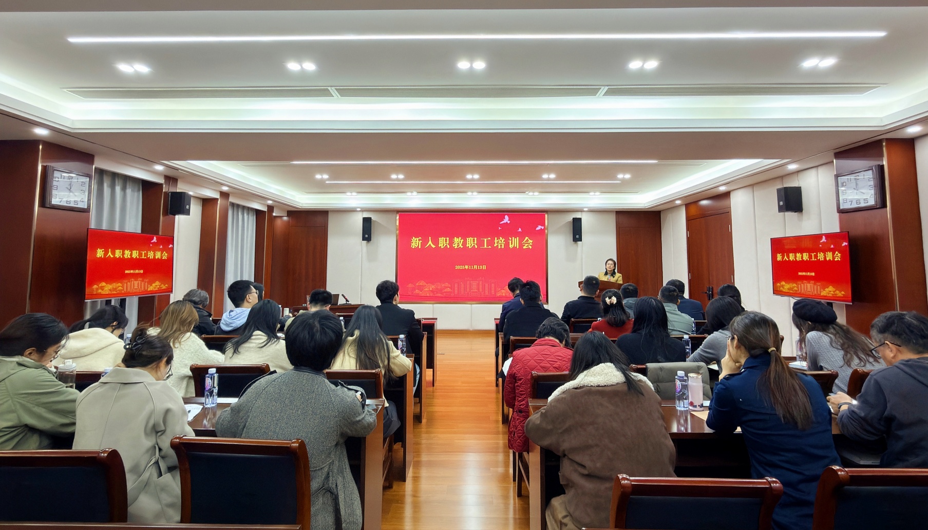 11月13日,禁漫天堂在教学楼5201会议室举行2025年新教职工入职培训,副院长赵宇出席并讲话,2024年以来入职的全体教职工参加培训,会议由人事处处长孔文主持。
