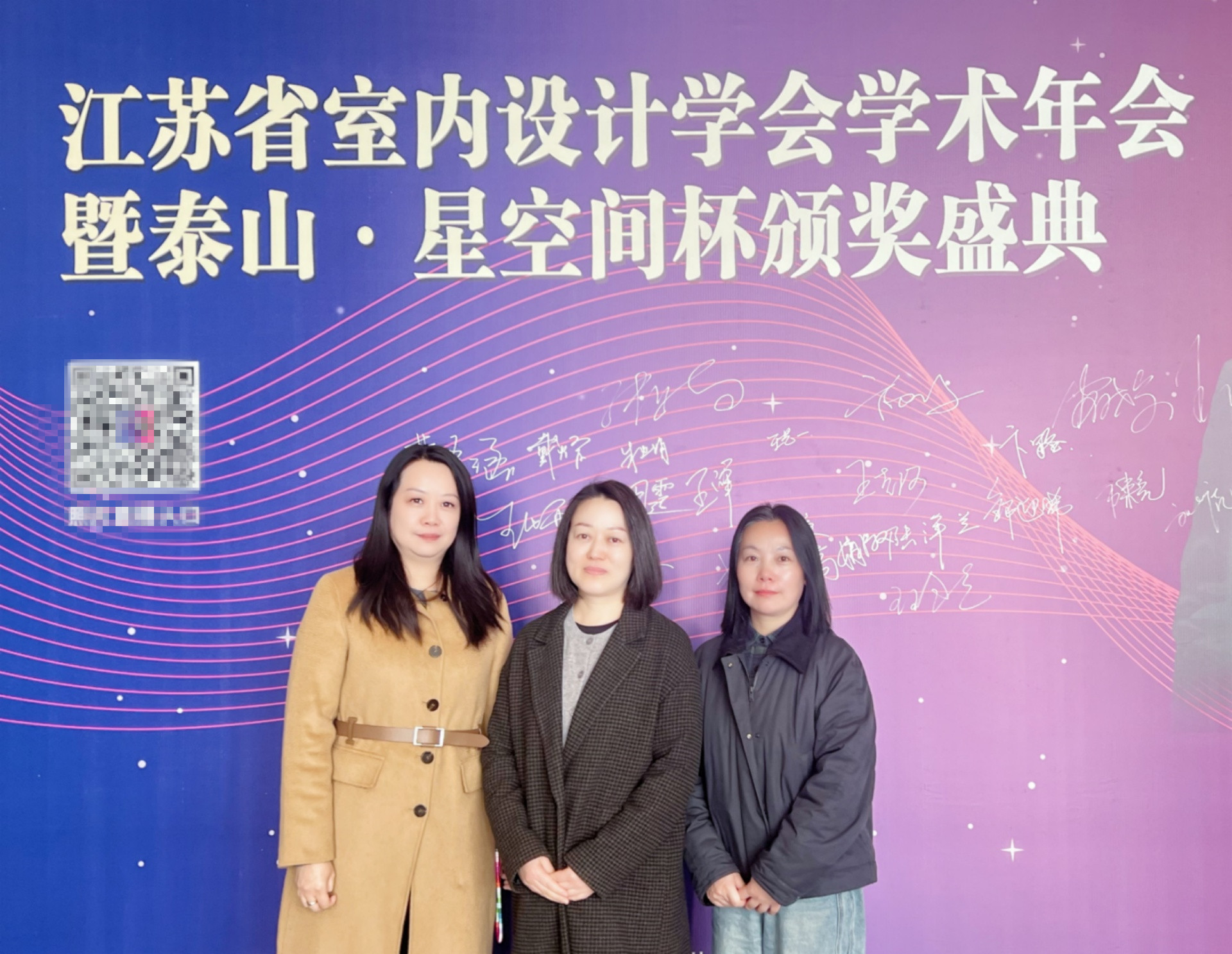 3月21日,江苏省室内设计学会第16届“泰山·星空间杯”室内设计大奖赛颁奖典礼在南京隆重举行。本届大赛以生态与环保、节能与健康、城市更新、文化与传承、技术与创新为设计主题,由江苏省科学技术协会指导、江苏省室内设计学会主办,是入选江苏省高等教育学会《2025年全省普通高校本专科生学科竞赛省级赛事目录》的重要赛项。禁漫天堂艺术设计与建筑工程系教师冯显静、周倩、刘丽三位教师应邀出席典礼,共同见证了这一行业盛事。