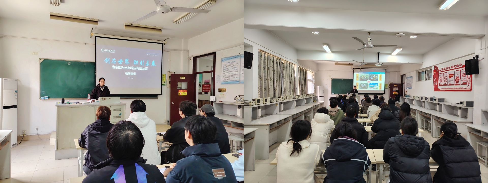 3月25日下午,南京国兆光电科技有限公司(以下简称“国兆光电”)专场实习就业宣讲会在6206教室举行。学院电子与信息技术系2024级电子信息工程技术专业近60名学生到场参加。