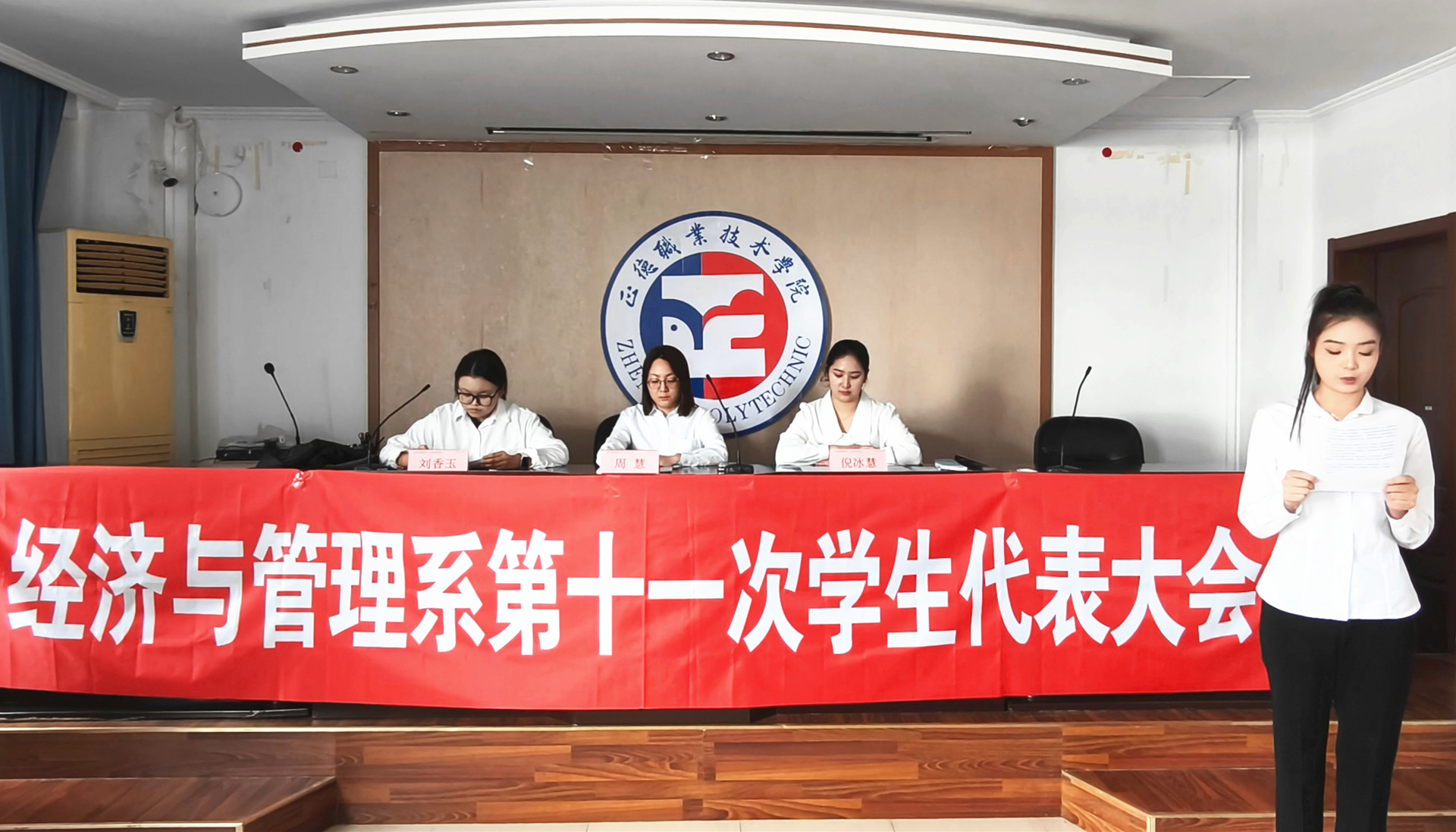 为进一步深化学生自我教育、自我管理、自我服务、自我监督的机制建设,6月13日,经济与管理系在7508会议室召开第十一次学生代表大会。党支部书记、副主任周慧、团总支书记倪冰慧、院学生会代表、兄弟系部学生会代表、全体学生代表齐聚一堂,共襄盛会,共话发展。本次大会由经管系主席团成员刘香玉主持。