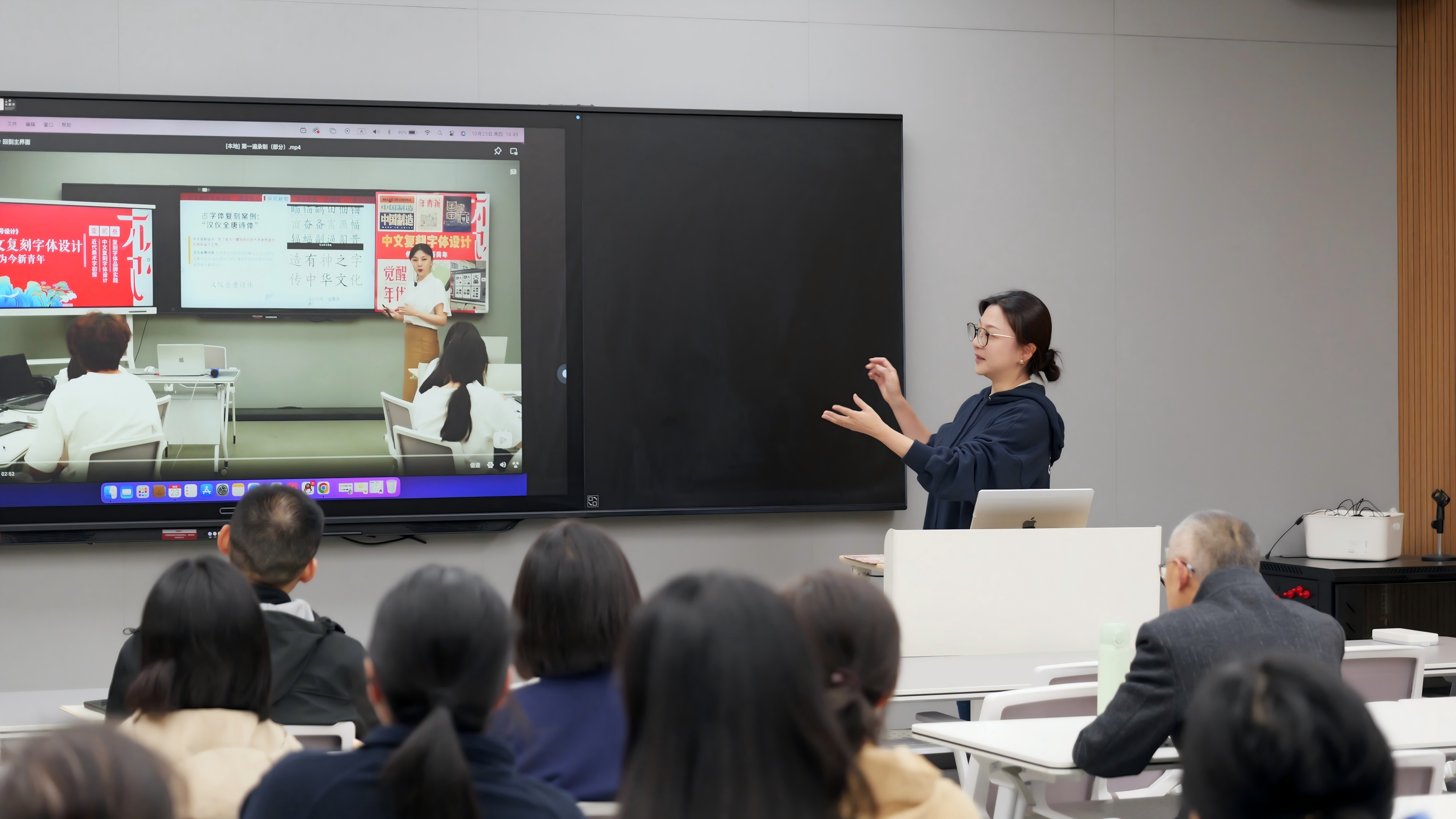 会议最后,2025年江苏省高校微课教学比赛二、三等奖获得者——数字媒体专业群教师王陶、葛雯作了经验分享。两位老师分别以《〈新青年〉启示下的中文字体复刻设计》、《AIGC让文物“活”起来——融媒体短视频实战》为例,从“选题精准化、设计情境化、技术融合化”三方面分享,解析如何将传统历史文化转化为微课资源,用AI技术突破教学难点,嵌入实操增强互动与代入感。她们强调“微课不仅是技术呈现,更要传递课程温度”,现场教师认真记录精彩要点,纷纷表示受益匪浅。刚工作一年的青年教师黄可凡和杜小旋在会后谈到,今天两位老师的经验分享为她们打开了微课设计的新思路,未来将多向骨干教师请教,努力打造具有个人特色的数字化教学资源。