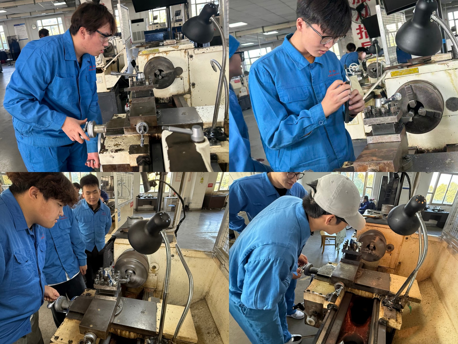 实训过程中,同学们态度严谨、热情高涨,专注练习每一个操作步骤。从钳工的锯削、锉削、钻孔,到车工的零件车削加工,大家互帮互助、反复琢磨,不断提升操作熟练度。南航教师全程巡回指导,及时纠正学生操作中的问题,耐心解答技术疑问,助力学生掌握核心技能。同学们纷纷表示,此次实训将理论知识与实践操作深度结合,不仅提升了动手能力,更深刻体会到航空维修工作“严谨细致、精益求精”的职业精神。