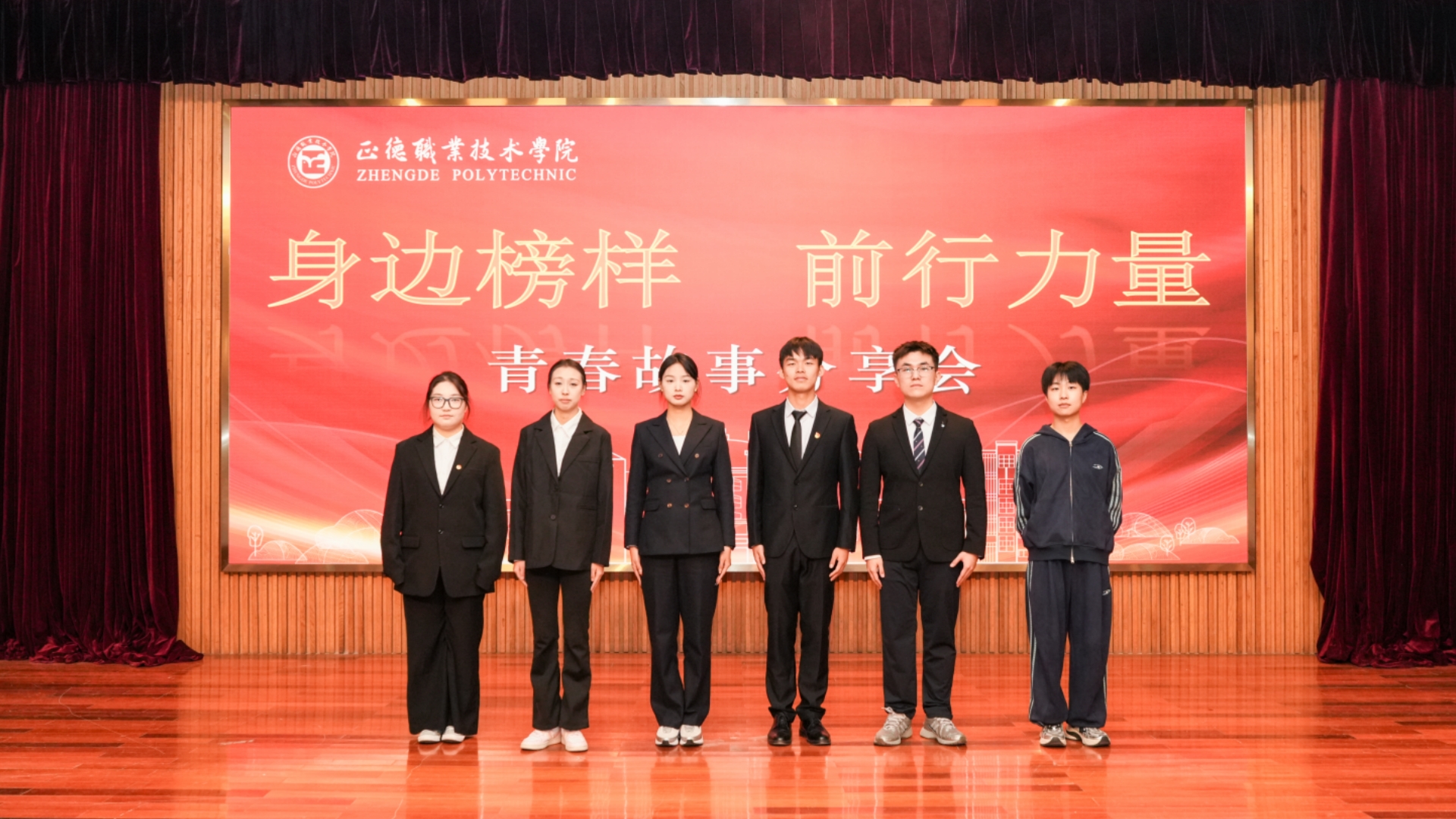 通过六位榜样的真实讲述,同学们看到了坚持、互助、实干与担当在青春成长中的璀璨光芒。他们的事迹印证了“奋斗是青春最亮丽的底色”,也为全体正德学子锚定目标、砥砺前行提供了生动的参照。学院将继续深化榜样育人机制,让“身边榜样”的故事持续传播,让“前行力量”不断汇聚,激励每一位学子在属于自己的赛道上奋力奔跑,共同谱写昂扬向上的青春乐章。