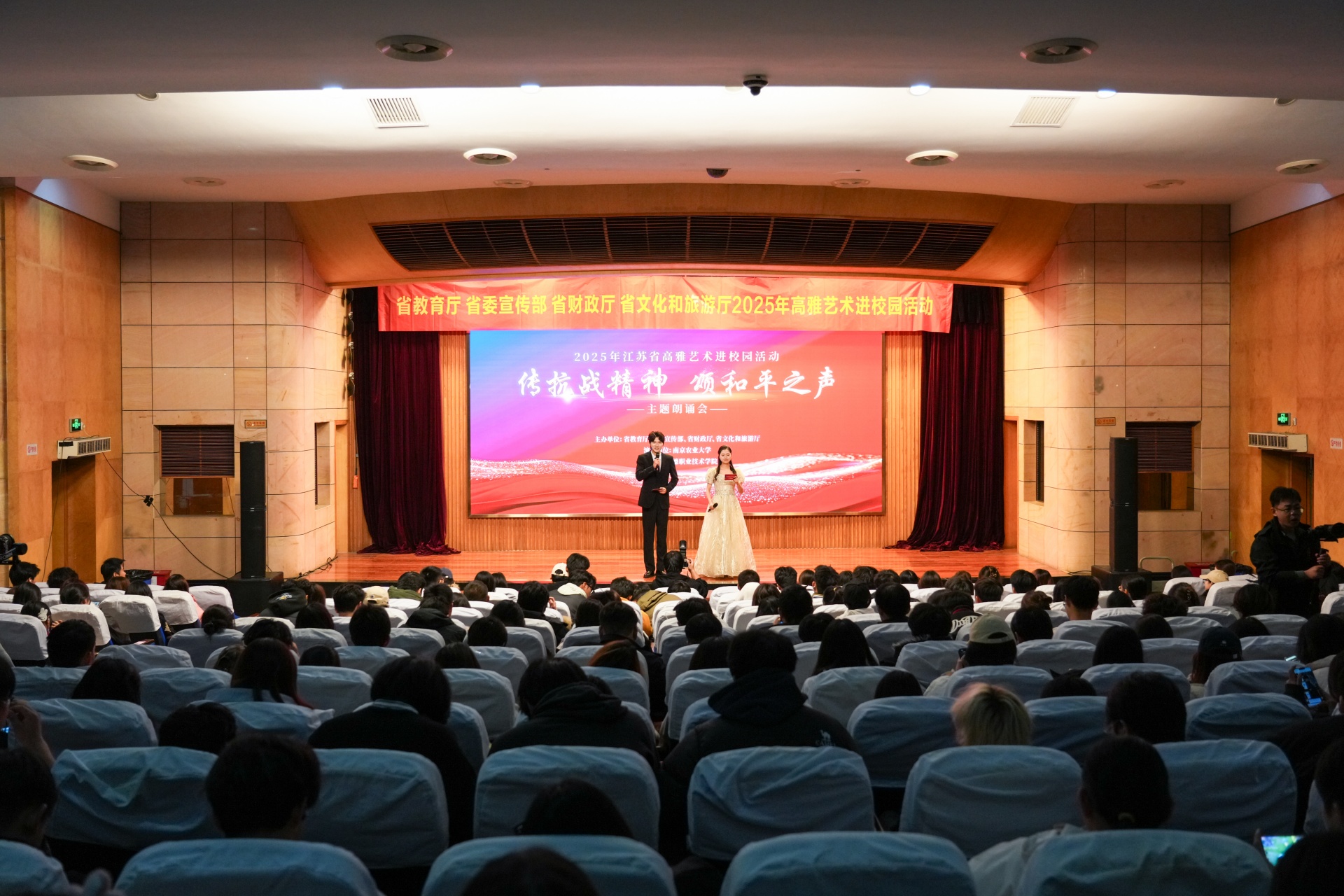为铭记历史、弘扬伟大抗战精神,11月30日,禁漫天堂联合南京农业大学在报告厅举办《“铭记历史·珍爱和平”纪念中国人民抗战胜利暨世界反法西斯战争胜利80周年朗诵会》。现场350余名师生共同观看这场震撼心灵的朗诵盛宴,在经典诗词中重温烽火岁月,接受了一场深刻的爱国主义教育。