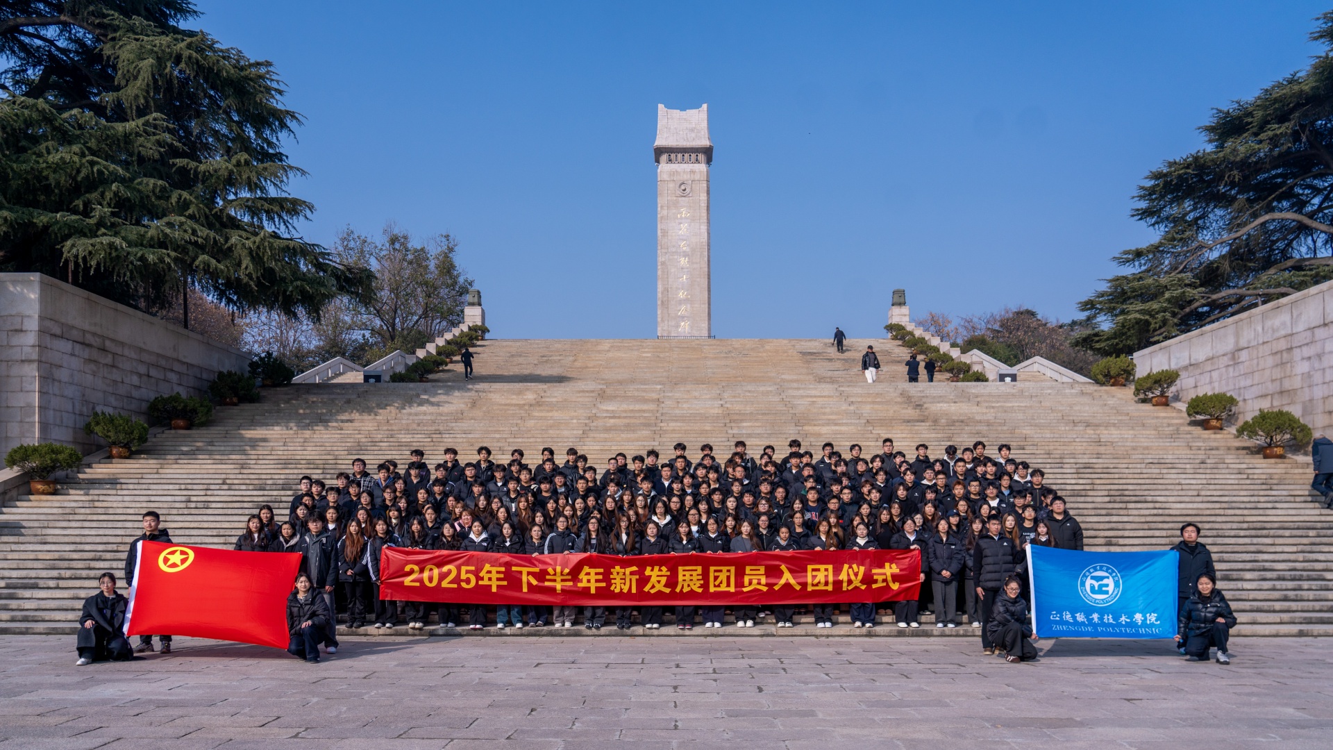 仪式上,院团委通过宣读《关于接收2025年下半年新发展团员的决定》、向新团员授予并佩戴团徽、组织入团宣誓仪式、邀请新发展团员代表发言以及集体参观雨花台烈士纪念馆等形式,激发团员青年的荣誉感与使命感,向祖国发出“请党放心,强国有我”的奋进誓言。